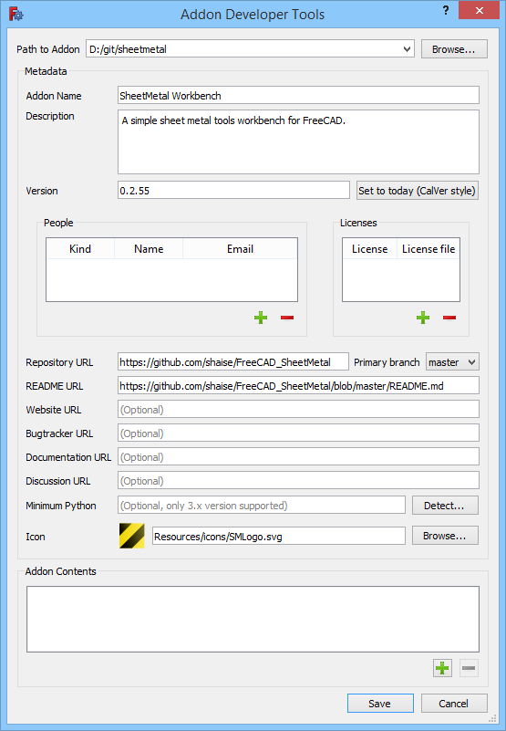 **Path to Addon** : The path to the local git repository.-