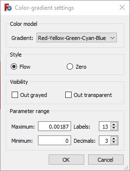 - Style: The default option Flow uses the full color gradient range. The option Zero uses only the color gradient range starting form the color that would display the mean value to the maximum.