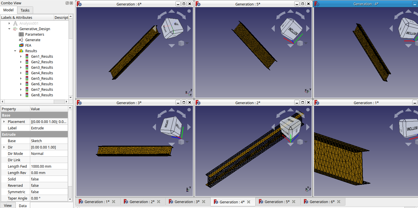 - Switch back to the FEMbyGEN Workbench and with the Generate button, create all generations.