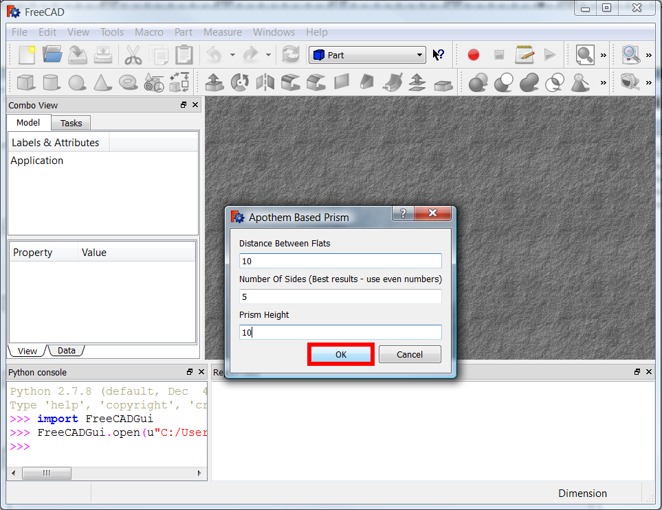 FreeCAD.Console.PrintMessage("Hello World! \n")
