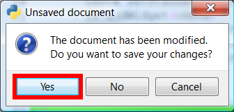 8. A window appears asking for confirmation to save the code; click on Yes. You can also use Ctrl+S to save the file.