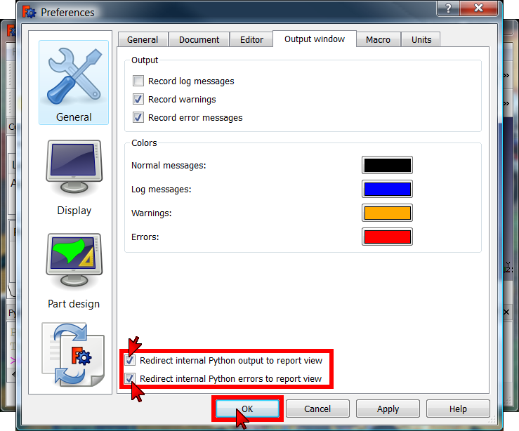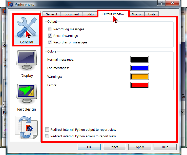 align=center|Output window preferences