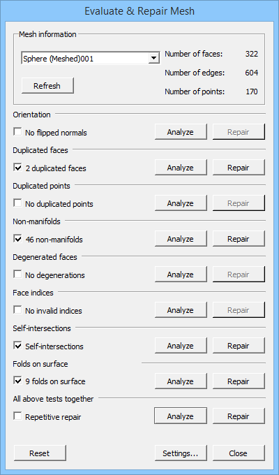 The Evaluate & Repair Mesh dialog box opens.