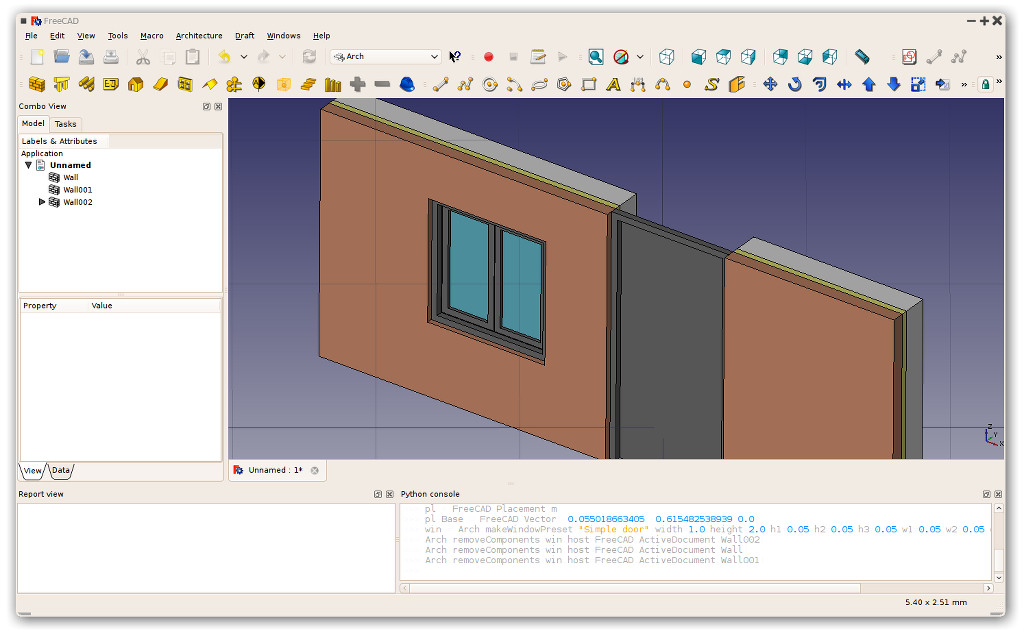 Much work has been done on both FreeCAD and IfcOpenShell, which is the piece of software responsible for handling IFC files in the Arch workbench. When using a development version of IfcOpenShell, apart from a spectacular gain in speed when importing medium-sized IFC files (around 50Mb), FreeCAD is also able to export models to the IFC format. The support to export is still in first stages of development, but already manages to export files readable without errors by most of the major IFC-supporting applications.