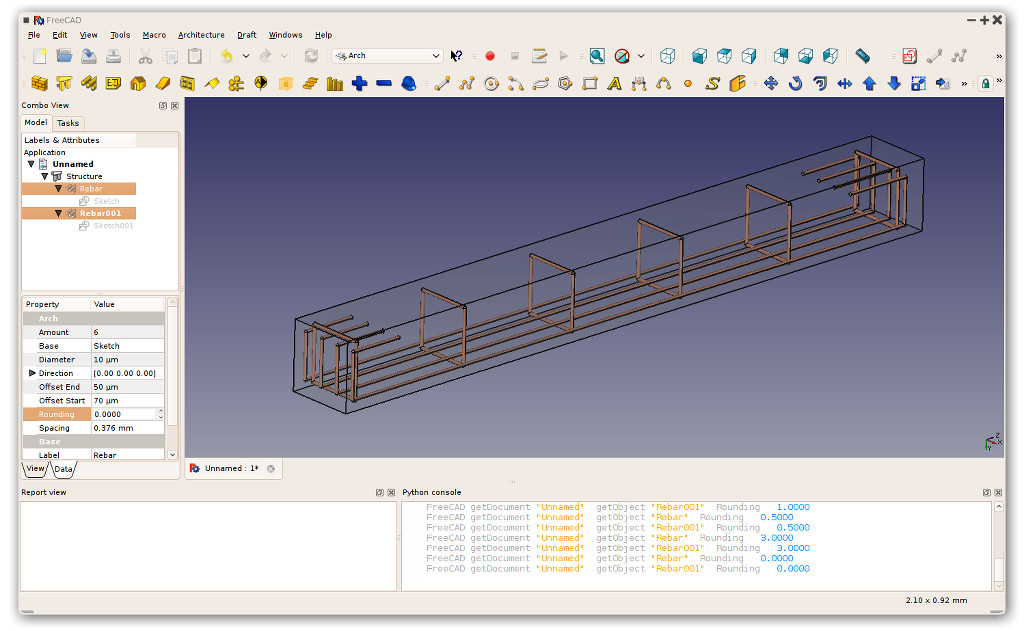 Reinforcing bars (also called rebars) have been introduced with the Arch Rebar tool. They are also based on sketches, which ensures great flexibility. They are created basically by drawing the diagrams of the bars on the appropriate faces of structural elements, then turning those diagrams into actual rebars.